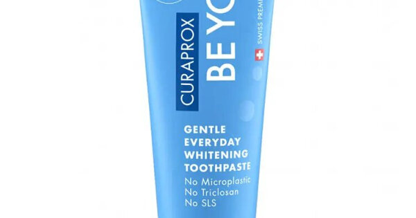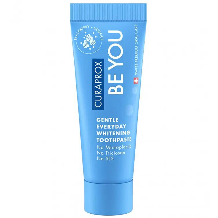 Відбілююча зубна паста Curaprox Be you з кольоровими мікрогранулами і незвичайними яскравими смаками ніжно відбілює зуби, видаляє плями, мінералізує пошкоджену емаль та створює заспокійливий ефект для ясен. Паста містить комплекс натуральних ферментів, що входять до складу слини (лактопероксидазної системи ферментів). Завдяки цьому паста підтримує місцевий імунітет порожнини рота, посилює антибактеріальну, ремінералізуючу, очищувальну дію слини. Не містить SLS (лаурилсульфат натрію), триклозан, парабени, штучні підсолоджувачі, барвники, загусники та консерванти. Завдяки відсутності SLS зубна паста CURAPROX не викликає подразнення слизової оболонки, мінімізує ризик виникнення афтозних виразок, не перешкоджає лікувальному ефекту хлоргексидину.