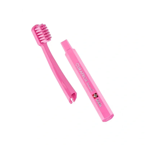1. Складна дорожня щітка CURAPROX Kids – компактна, з ультрам’якою щетиною Curen®, яка дбайливо очищує зубну емаль, не травмуючи ясна.