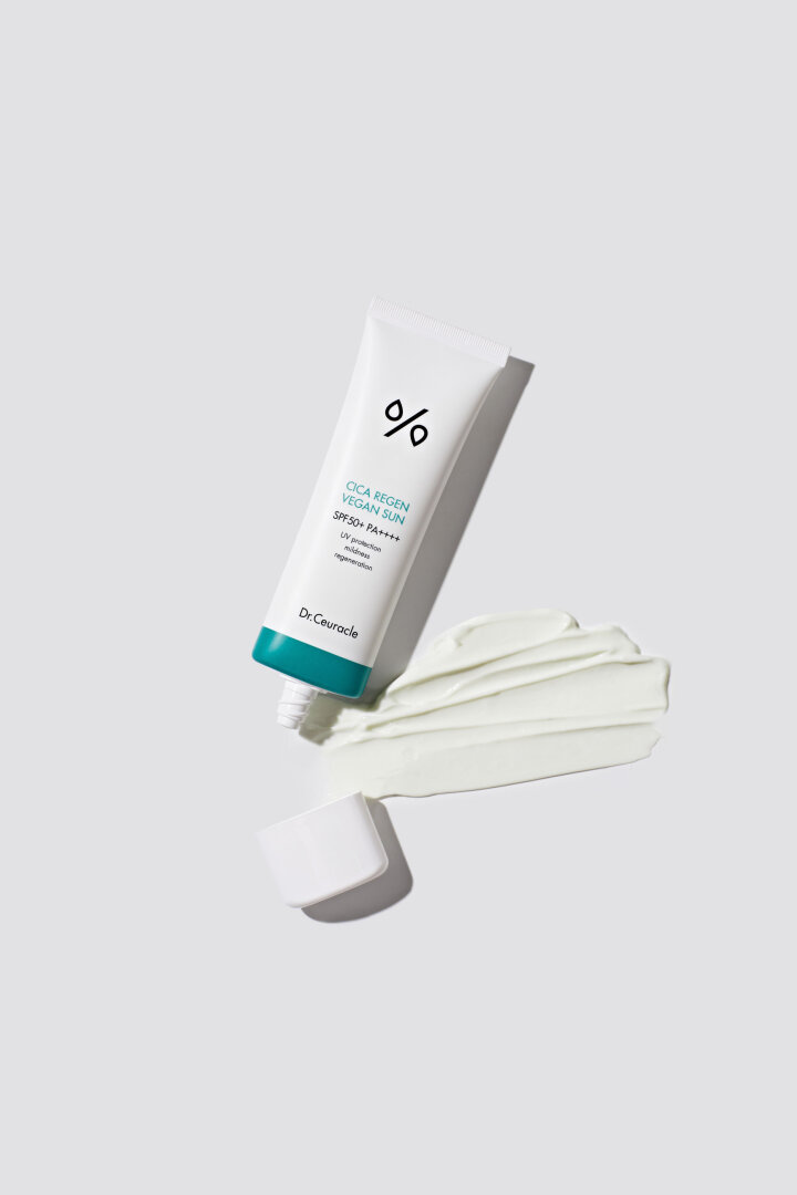 Dr Ceuracle Сica Regen Vegan Sun - сонцезахисний веганський крем з центелою. Оновленний легкий сонцезахисний крем з протизапальною і антиоксидантною діями на основі центелли азіатської перешкоджає проникненню забруднюючих речовин в шкіру і захищає її від шкідливих ультрафіолетових променів.