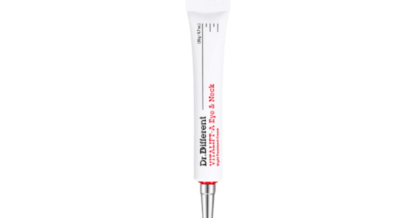 Dr.Different VITALIFT-A Eye & Neck - крем для шкіри навколо очей з ретиналем 0.025%. Спеціальний лікувальний крем для інтенсивного догляду за ніжною зоною навколо очей і зморшками на шиї. Він містить найкращий інгредієнт проти старіння – 0,025% ретиналю та 11 різних типів пептидів для зменшення зморшок і вирівнювання тону шкіри. Діє проти перших ознак старіння. Підходить для всіх типів шкіри.
