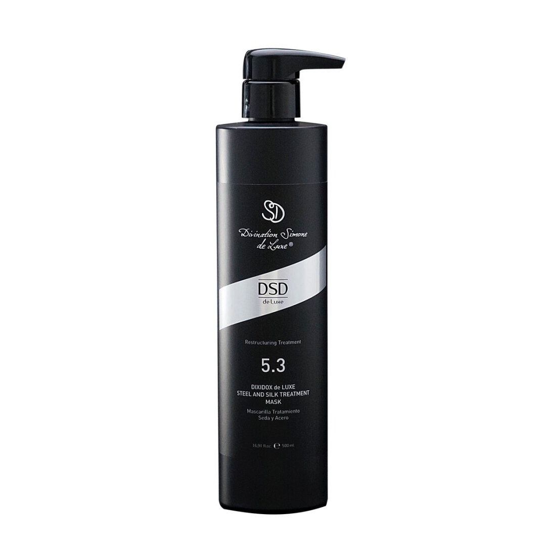 DSD de Luxe 5.3 Dixidox Steel And Silk Treatment Mask - відновлююча маска призначена для відновлення структури волосся, пошкодженого внаслідок впливу несприятливого комплексу екологічних, термічних, хімічних факторів, у тому числі забарвлення волосся та надмірної інсоляції. Висока концентрація зволожуючих та регенеруючих компонентів, таких як фосфоліпіди, сфінголіпіди, колаген, кератин, гідролізований шовк, екстракт орхідеї дозволяє відновити структуру волосся як на рівні кутикули, так і на рівні кератинових фібрил коркового шару. Зволожує, але не обтяжує волосся. Після застосування маски волосся набуває здорового вигляду, наповнюється вологою, з’являється блиск, еластичність і додатковий об’єм.