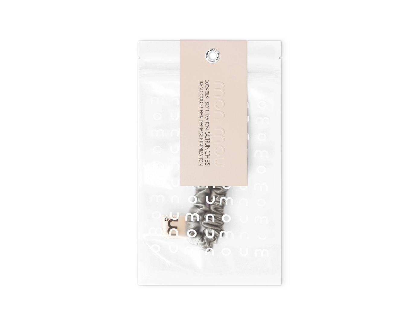 MON MOU Silk Slim Scrunchie Тонка шовкова резинка (сіро-бежева) — Фото 24