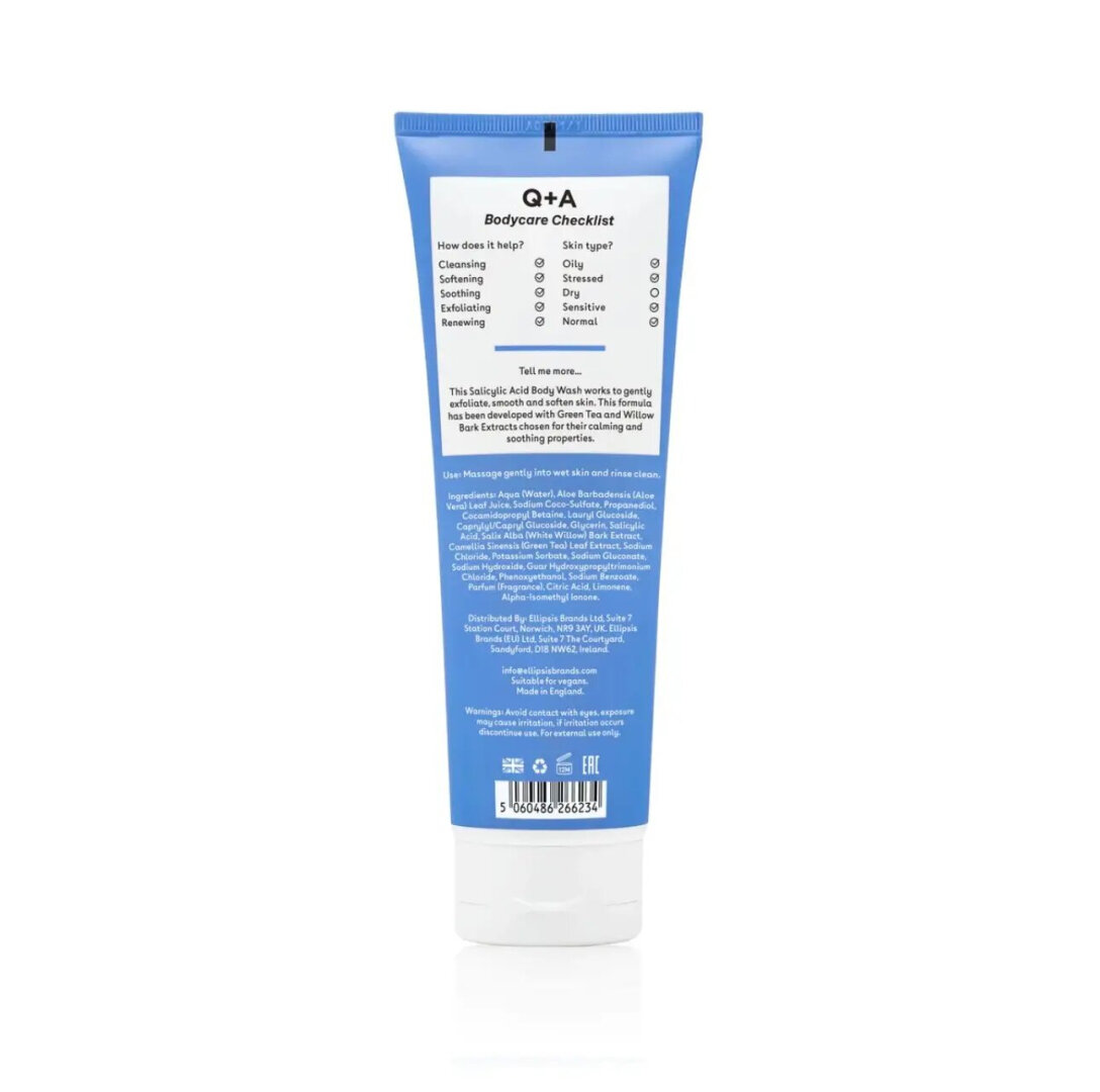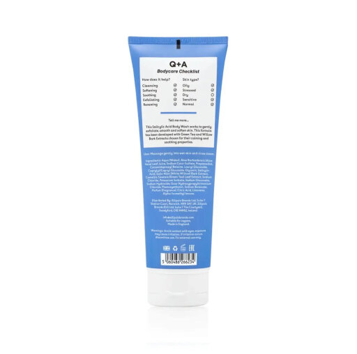 Цей гель для душу м'яко відлущує, розгладжує та пом'якшує шкіру, завдяки вмілому поєднанню саліцилової кислоти, кори білої верби та екстракту зеленого чаю.