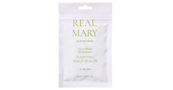 Rated Green Real Mary Cold Brewed Rosemary Purifyng Scalp Scaler - очищаюча маска з морською сіллю. Засіб містить 70% органічного соку розмарину холодного віджиму та ретельно підібрані натуральні компоненти. Ця очищуюча маска для шкіри голови з додаванням морської солі м'яко очищає, допомагаючи видаляти забруднення, накопичення шкірного себуму та лущення.