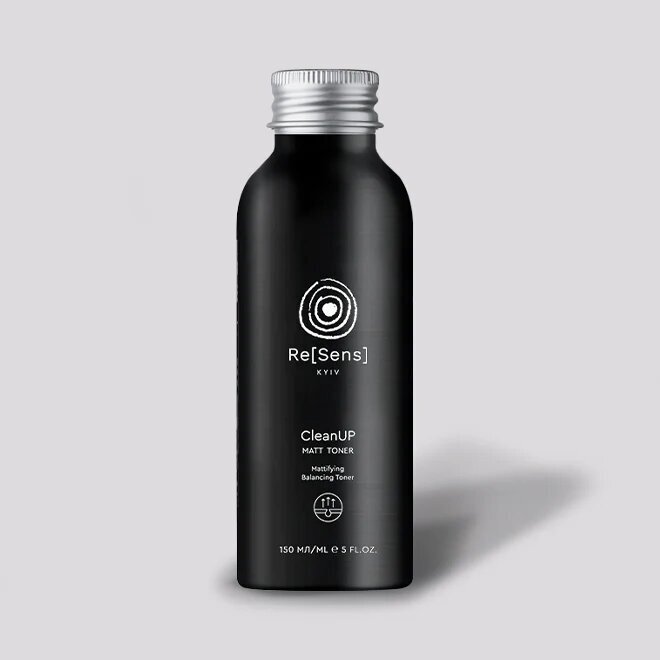 Re[Sens] CleanUp Matt Toner - матувальний тонер. Завдяки своїй унікальній формулі, розробленій з урахуванням потреб чутливої шкіри, тонер дбайливо виконує фінальну та важливу роль щоденного ритуалу очищення та забезпечує шкірі необхідну підготовку для подальших кроків догляду. Надає природного сяйва, гладкого та рівномірного тону. Завдяки мінеральному комплексу лактату цинку та екстракту шкірки хіоського танжерину знижується активність сальних залоз, генів запалення та карбонілювання білка.