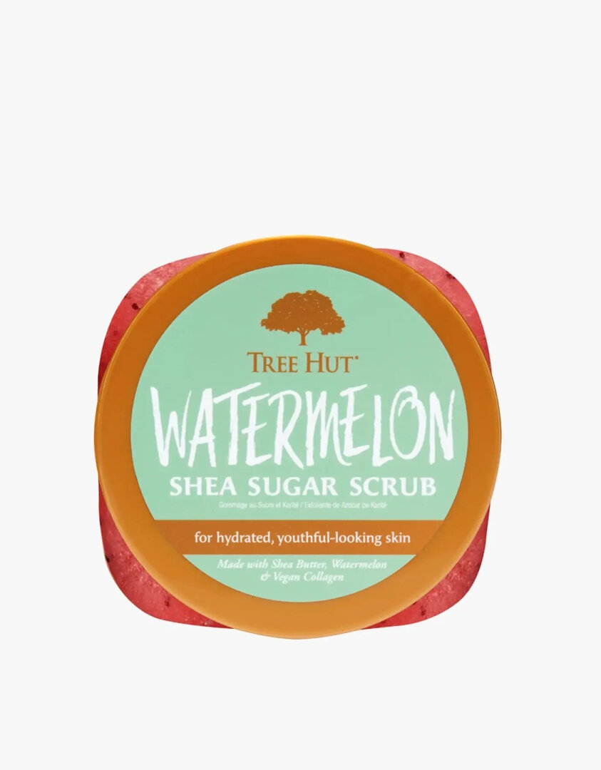 Цукровий скраб від Tree Hut збагачений олією ши, екстрактом кавуна, веганського колагену та рядом інших натуральних олії, таких як олія примули вечірньої, авокадо, макадамії, солодкого мигдалю, сафлору та апельсинової олії.