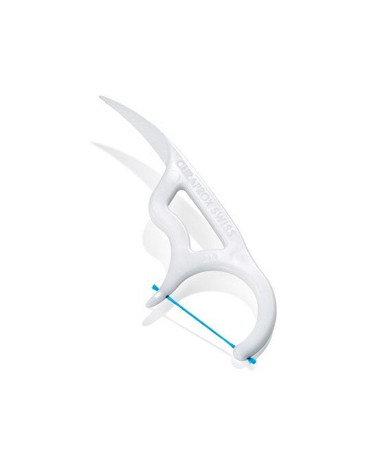Curaprox – это очень простая и удобная в использовании нить в сочетании с пластиковой зубочисткой.