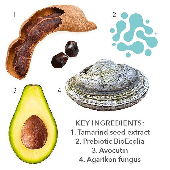 - Пребиотик БиоЭколия восстанавливает баланс микробиому кожи, питая полезную флору.
