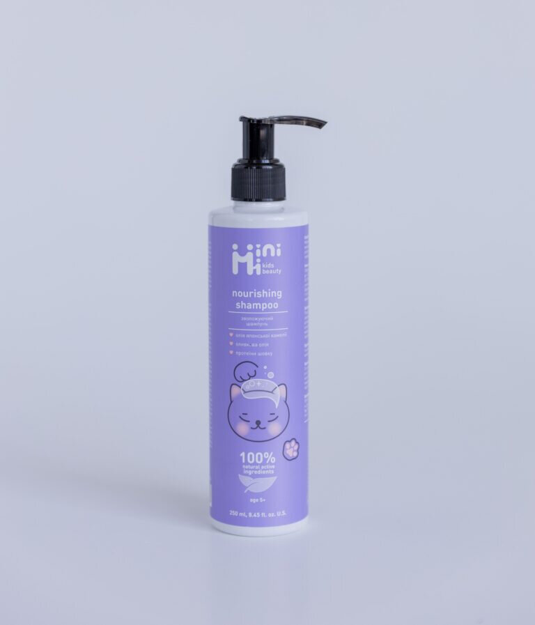 MINIMI Nourishing Shampoo – детский увлажняющий шампунь. Глубоко и нежно очищает волосы, способствуя восстановлению естественного баланса кожи головы. В состав шампуня входят уникальные растительные экстракты с содержанием витаминов и полезных веществ, которые являются природным источником микроэлементов, минералов и аниоксидантов, способствующих восстановлению волос, придавая им видимую шелковистость, легкость при расчесывании и естественный блеск.