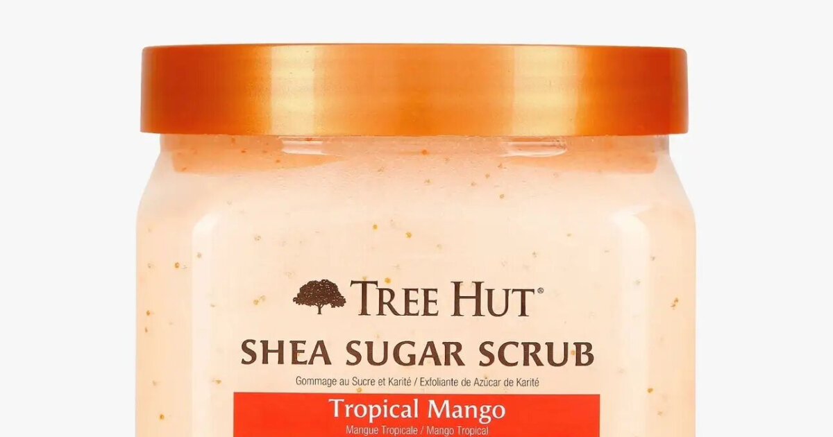 Сахарный скраб от Tree Hut обогащен маслом ши, пюре манго и множеством других натуральных масел, таких как масло авокадо, макадамии, сладкого миндаля, сафлора и апельсинового масла.