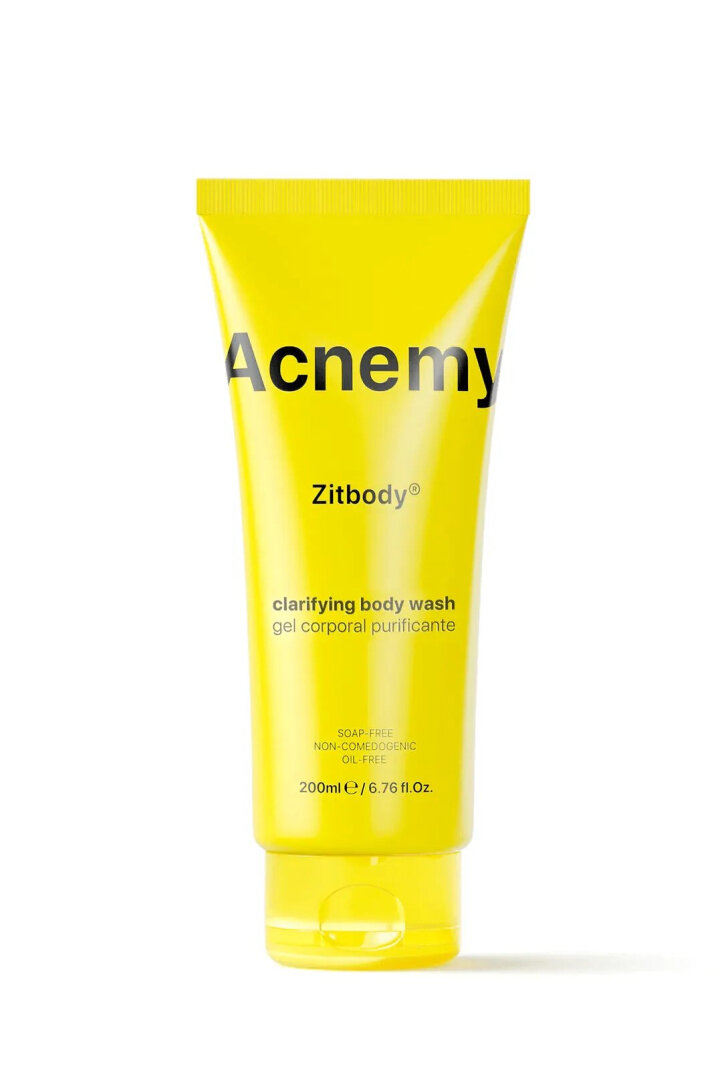 Acnemy Zitbody - ефективний очищуючий засіб для шкіри тіла, схильної до утворення акне. Косметичний продукт контролює вироблення себуму, зменшує та запобігає появі висипань на шкірі, при цьому очищаючи від забруднень. Формула гелю складається з унікальної комбінації АНА кислот (гліколевої та мигдальної) та BHA (саліцилової кислоти), які впливають як на поверхні, так і всередині пір, глибоко очищуючи, відлущуючи омертвілі клітини та зменшуючи запалення. При регулярному використанні Zitbody ваша шкіра стане чистою, гладкою та здоровою.