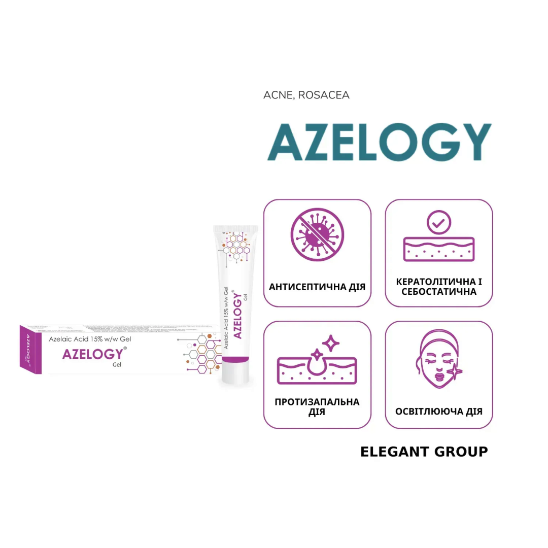 Azelogy Azelaic Acid 15% - лікувальний крем з азелаїновою кислотою. Одним із засобів, що призначаються фахівцями як при акне, так і при розацеї, є азелаїнова кислота. Ефективність азелаїнової кислоти при цих захворюваннях доведена численними дослідженнями. Тому вона включена до протоколів лікування як акне, так і розацеа. Найбільш ефективні засоби з азелаїновою кислотою, що застосовуються саме при розацеа, є засоби у формі гелю з концентрацією 15%.