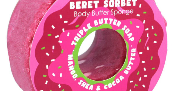 Bomb Cosmetics - губка з милом "Raspberry Beret Sorbet Body Buffer Sponge"