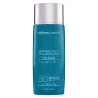 Colorescience Sunforgettable Total Protection Face Shield Classic - сонцезахисний крем для обличчя. Водостійкий сонцезахисний крем підходить для всіх відтінків шкіри, не залишає білих слідів. Його зволожуюча і багата на антиоксиданти формула (запатентована технологія EnviroScreen™) забезпечує потужний захист SPF 50 від UVA/UVB-променів, а також від вільних радикалів та оксидативного стресу.