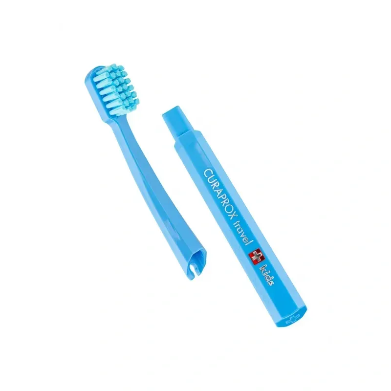 1. Складна дорожня щітка CURAPROX Kids – компактна, з ультрам’якою щетиною Curen®, яка дбайливо очищує зубну емаль, не травмуючи ясна.