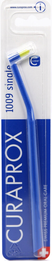 Монопучкова щітка CS 1009 Single ідеально підходить для догляду за брекет-системами, окремо розташованими зубами та зубними протезами. Має запатентовані щітинки Curen®, 9 мм в довжину та діаметром 0,12 мм