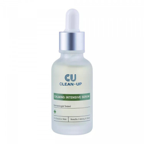Cuskin Clean-Up Calming Intensive Serum - заспокійлива сироватка для обличчя з вітаміном К. Сироватка заспокоює та відновлює подразнений епідерміс, знімає стрес та зміцнює захисні функції шкіри. Має активну формулу на основі рослинних екстрактів, які мають протизапальну та антибактеріальну дію. Також сироватка пом'якшує та зволожує, підвищує еластичність та запобігає появі сухості, лущення, стягнутості та симптомів зневоднення. Допомагає позбутися почервонінь, запалень, акне, висипань, хворобливих відчуттів та дискомфорту. Знижує активність сальних залоз, усуває жирний блиск і звужує пори. Стимулює процес оновлення клітин, тим самим допомагає відновити порушений захисний бар'єр.
