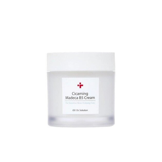 Cuskin Dr.Solution Cicaming B5 Madeca Cream - заспокійливий крем з центеллою і пантенолом. Крем інтенсивно доглядає за чутливою та втомленою шкірою, роблячи її зволоженою та здоровою. Основа засобу – кипарисова вода, яка має потужні заспокійливі властивості та надає протизапальну дію. Екстракт центелли, активний заспокійливий комплекс ТЕСА (азіатикозид, азіатикова кислота, мадекассосид, мадекасова кислота + алантоїн) та пантенол (вітамін В5) надають швидку регенеруючу та загоюючу дію на пошкоджені клітини шкіри. Засіб ніжної крем-гелевої приємної текстури, яка не обтяжує.