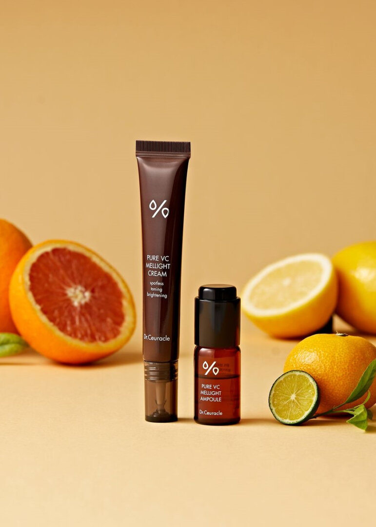 Dr.Ceuracle Pure VC Mellight Cream - концентрований крем з комплексом вітаміну С. Освітлює небажану пігментацію, перешкоджає появі нових пігментних плям, уповільнює вікові процеси, вирівнює тон і надає рівного сяйва. Захищає шкіру від зовнішніх подразників, запобігає руйнуванню колагенових волокон, уповільнює окисні процеси.