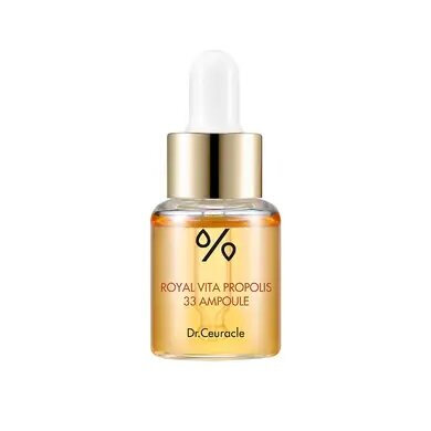 Dr.ceuracle Royal Vita Propolis 33 Ampoule - ампульна сироватка з екстрактом прополісу. Мультифункціональна сироватка містить 33,5% екстракту прополісу, а також приголомшливий набір вітамінів і антиоксидантів для інтенсивного відновлення, зволоження і підвищення тонусу. Вона надає шкірі природне сяйво, наповнює енергією і поступово вирівнює тон.