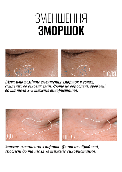- Розгладження зморшок – стимулює вироблення колагену, що сприяє зменшенню дрібних зморшок і робить шкіру більш пружною.