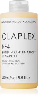 Olaplex №4 Bond Maintenance Shampoo - призначений для ніжного очищення шкіри голови, він делікатно очищує та інтенсивно доглядає волосся всіх типів. Склад цього шампуню збагачено головною активною речовиною Olaplex, яка є патентом американського бренду: Bis-Aminopropyl Diglycol Dimaleate – активний компонент у формулах, який відповідає за інтенсивне відновлення дисульфідних зв'язків . Завдяки реанімування цих сполук волосся набуває сили і стає більш еластичним. Зникають проблеми ламкості, сухості та посіченості.