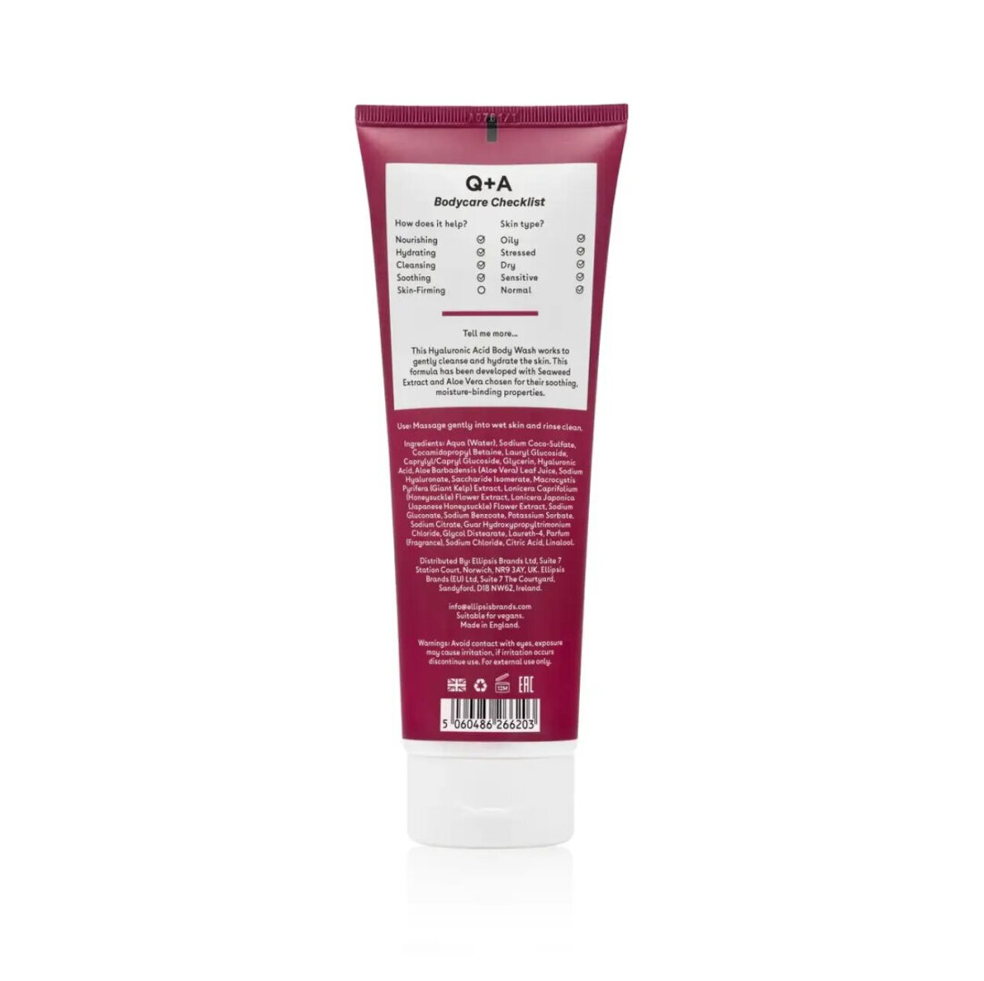 Aqua (Water), Sodium Coco-Sulfate, Cocamidopropyl Betaine, Lauryl Glucoside, Caprylyl/Capryl Glucoside, Glycerin, Hyaluronic Acid, Aloe Barbadensis (Aloe Vera) Leaf Juice, Sodium Hyaluronate, Saccharide Isomerate, Macrocystis Pyrifera (Giant Kelp) Extract, Lonicera Caprifolium (Honeysuckle) Flower Extract, Lonicera Japonica (Honeysuckle) Flower Extract, Sodium Gluconate, Sodium Benzoate, Potassium Sorbate, Sodium Citrate, Guar Hydroxypropyltrimonium Chloride, Glycol Distearate, Laureth-4, Parfum (Fragrance), Sodium Chloride, Citric Acid, Linalool.