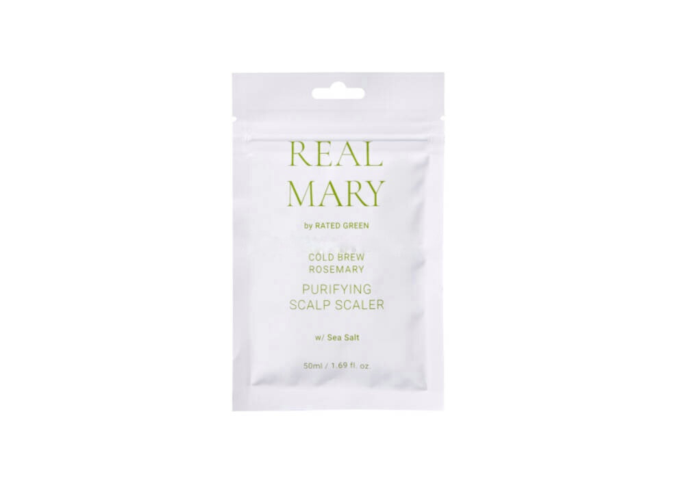 Rated Green Real Mary Cold Brewed Rosemary Purifyng Scalp Scaler - очищаюча маска з морською сіллю. Засіб містить 70% органічного соку розмарину холодного віджиму та ретельно підібрані натуральні компоненти. Ця очищуюча маска для шкіри голови з додаванням морської солі м'яко очищає, допомагаючи видаляти забруднення, накопичення шкірного себуму та лущення.
