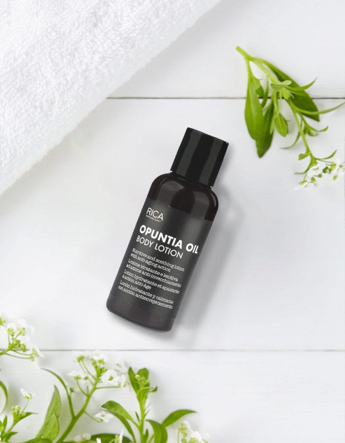 RICA Opuntia Oil Body Lotion – поживний і заспокійливий лосьйон для тіла з антивіковою дією. Ідеальний для сухої шкіри, оскільки глибоко живить та чинить заспокійливу дію на шкіру задля відчуття комфорту. Швидко поглинається і не залишає слідів.