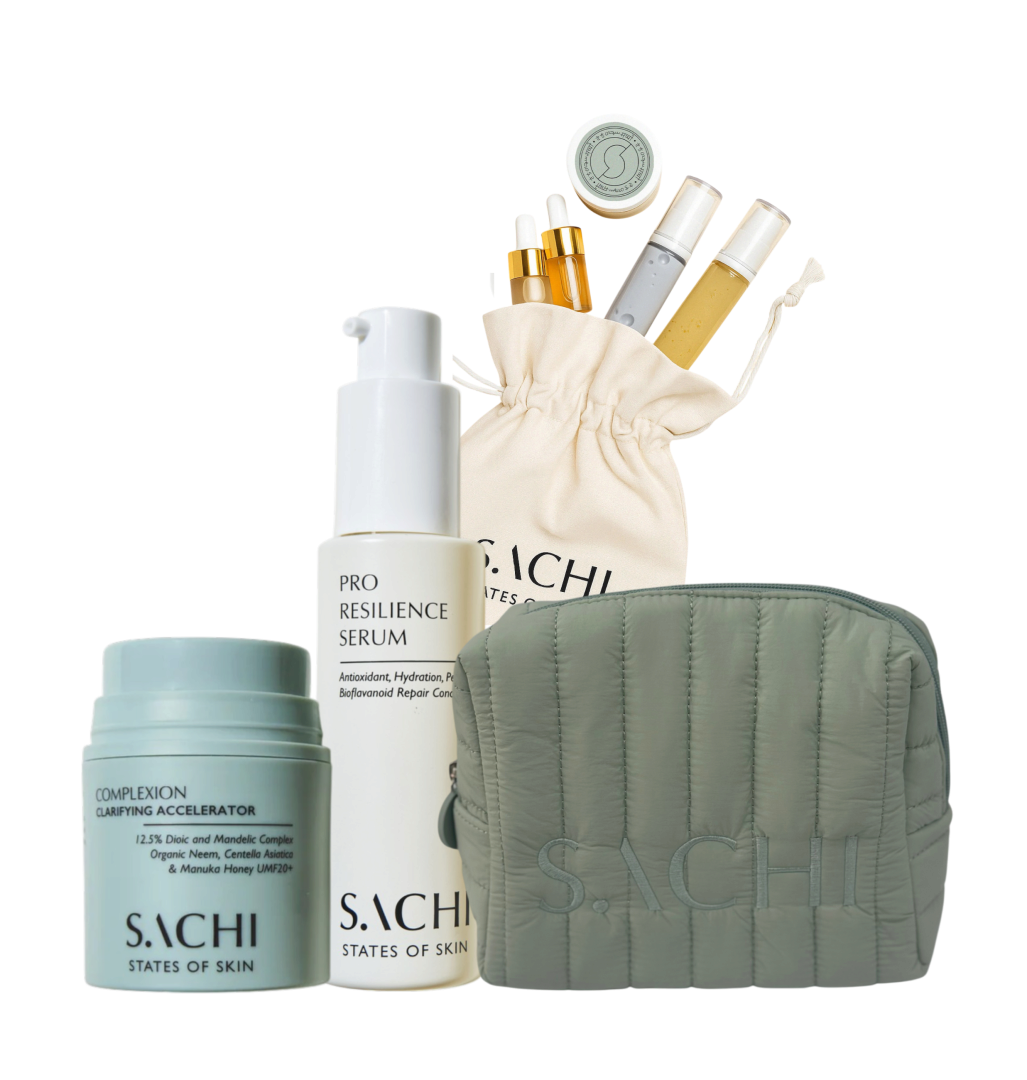 - Брендована косметичка SACHI SKIN для зручного зберігання засобів.