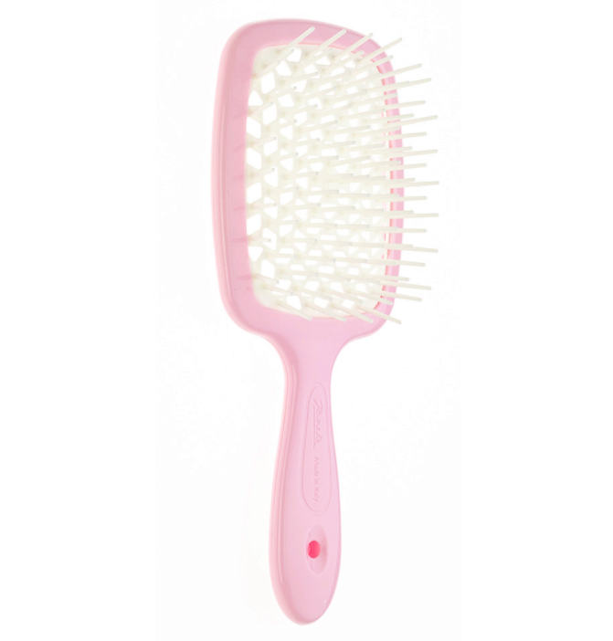 Щітка Janeke Superbrush 1830 легко і дбайливо розплутує волосся, не травмуючи їх структуру. Масажна база щітки має отвори у формі сот бджолиного вулика, які рівномірно розподіляють гаряче повітря фена, висушуючи волосся всього за кілька миттєвостей без будь-якої шкоди, не травмуючи шкіру голови, не електризуючи волосся. Легка, з ергономічною ручкою і м'якими щетинками  Janeke Superbrush 1830 швидко і якісно впорається навіть з самим неслухняним волоссям. Підходить як для сухого, так і для мокрого волосся. Щітка Janeke Superbrush 1830 значно спростить укладання волосся і подарує їм здоров'я і красу.