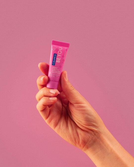 Отбеливающая зубная паста Curaprox Be you с цветными микрогранулами и необычными яркими вкусами нежно отбеливает зубы, удаляет пятна, минерализует поврежденную эмаль и создает успокаивающий эффект для десен. Паста содержит комплекс натуральных ферментов, входящих в состав слюны (лактопероксидазной системы ферментов). Благодаря этому паста поддерживает местный иммунитет полости рта, усиливает антибактериальное, реминерализующее, очищающее действие слюны. Не содержит SLS (лаурилсульфат натрия), триклозан, парабены, искусственные подсластители, красители, загустители и консерванты. Благодаря отсутствию SLS зубная паста CURAPROX не вызывает раздражения слизистой, минимизирует риск возникновения афтозных язв, не препятствует лечебному эффекту хлоргексидина.