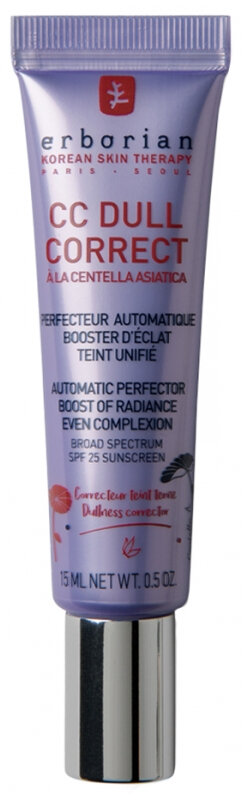 Erborian CC Dull Correct - корректирующий крем для лица. Мгновенно борется с тусклостью кожи, поворачивая ей сияние. Средство способствует разглаживанию тона и структуры кожи, ее увлажнению. Фиолетовый пигмент крема скрывает пигментацию и другие несовершенства. Формула крема подойдет к любому оттенку кожи, ведь подстраивается под тон кожи.