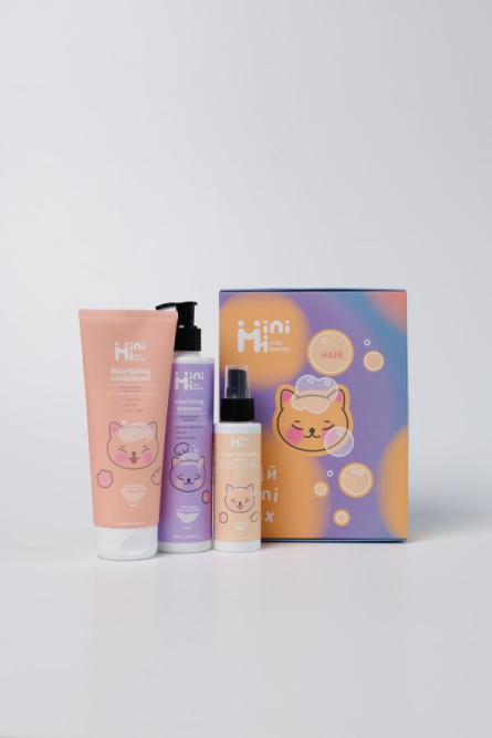 Міні-бокс “Набір для волосся” — набір для волосся, який стане чудовим подарунком для дівчаток та хлопців, які тільки починають цікавитися доглядом за собою. Це допоможе виховати звичку піклуватися про себе правильно і безпечно. Набір для волосся включає основні засоби для щоденного догляду за шкірою голови та волоссям.