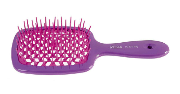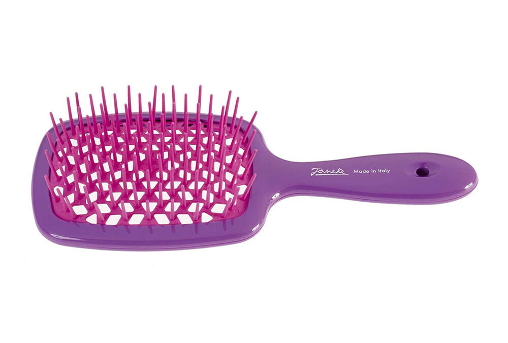 Щетка Janeke Superbrush легко и бережно распутывает волосы, не травмируя их структуру. Массажная база щетки имеет отверстия в форме сот пчелиного улья, которые равномерно распределяют горячий воздух фена, высушивая волосы всего за несколько мгновений без всякого вреда, не травмируя кожу головы, не электризируя волосы. Легкая, с эргономичной ручкой и мягкими щетинками Janeke Superbrush быстро и качественно справится даже с самыми непослушными волосами. Подходит как для сухих, так и для мокрых волос. Щетка Janeke Superbrush значительно упростит укладку волос и подарит им здоровье и красоту.
