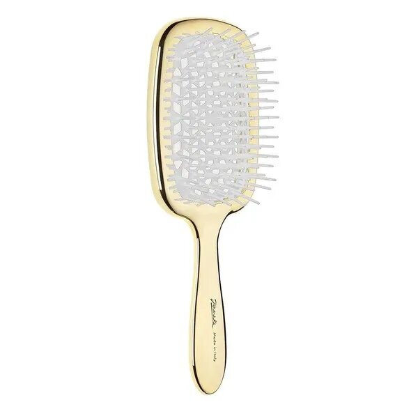 Janeke Superbrush The Original - універсальний гребінець для волосся лімітованої лінійки. Аксесуар має запатентовану форму, створену за принципом бджолиного вулика, яка допомагає зберегти здоров’я пасом при сушінні феном. Виріб також забезпечує безпечне розчісування, сприяє розплутуванню і запобігає ламкості. Високоякісний матеріал, який використовується у складі гребінця, запобігає деформації при дії будь-якої температури та зберігає початкову форму.