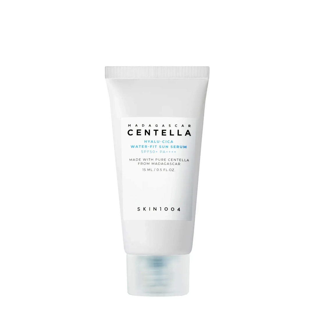SKIN1004 Madagascar Centella Hyalu-Cica Water-Fit Sun Serum SPF50+ PA++++ – сонцезахисний крем-серум заспокоює, освіжає та зволожує шкіру, створюючи невідчутний бар’єр, який захищає від ультрафіолетового UVA- та UVB-випромінювання.